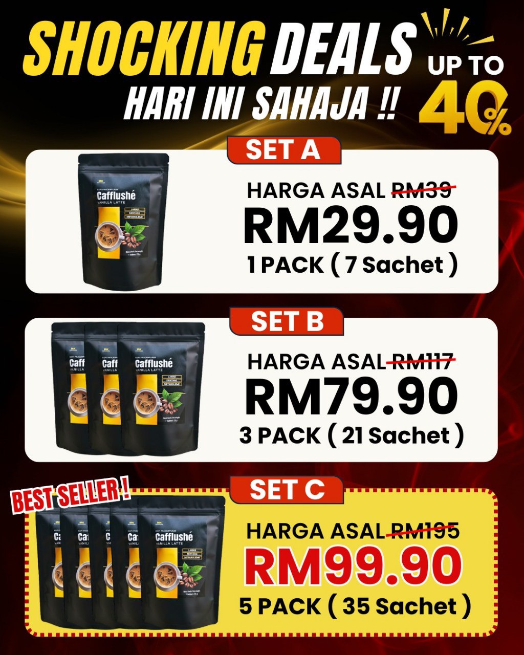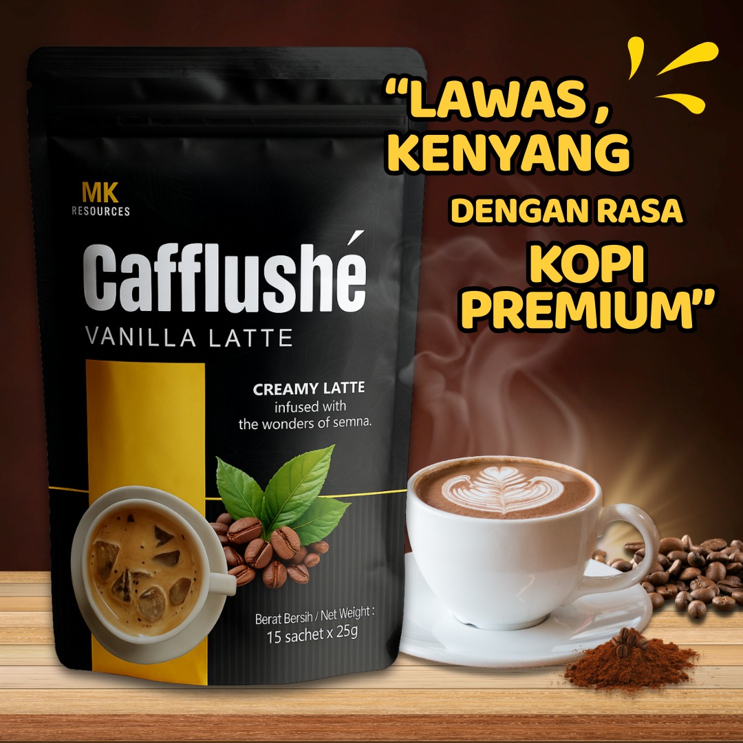 Cafflushe rasa kopi latte dengan lemak vanilla, sedap & penggemar kopi memang enjoy. Yang tak minum Kopi pun boleh addicted dengan rasa cafflushe.